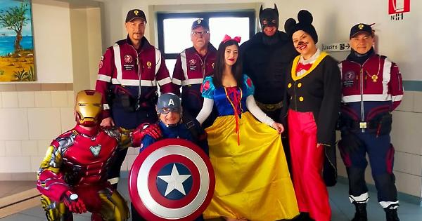 LADISPOLI – Si sono vestiti da Batman, Capitan America e Iron Man per dar coraggio ai piccoli pazienti del Bambino Gesù di Palidoro. I volontari dell’associazione della Polizia di Stato Ladispoli-Cerveteri hanno raggiunto l’ospedale per regalare sorrisi ai bambini ricoverati. Sono arrivati pure Topolino e Biancaneve lasciando a bocca aperta i bambini e le rispettive famiglie. «In occasione del Carnevale – scrive l’associazione – è stata volutamente trasformata una giornata di cure in un momento di pura magia. I volontari hanno portato sorrisi e divertimento nelle corsie, offrendo un supporto emotivo anche ai genitori».