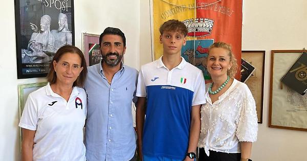 CERVETERI – Ci sono sogni che devono essere raccontati. Ci sono giovani che questi sogni vogliono inseguirli per andare a raccogliere un successo. È la storia di Francesco De Santis che sarà in Finlandia con la maglia azzurra a caccia di una medaglia. Il corridore 19enne cerveterano è stato convocato con l’Italia per i Campionati Europei Under 20 che si svolgeranno a Tampere dal 7 al 10 agosto. Un ragazzo che a poco a poco si è fatto strada, raccogliendo successi in giro per lo Stivale e stabilendo, quest’anno, il record italiano ottenuto nei 500 metri nella sua categoria. Si è meritato la chiamata e prima della partenza, lui che comunque ha già disputato i mondiali in Perù, è stato invitato ufficialmente in comune per un saluto istituzionale con il sindaco. «Rivolgo a Francesco i miei più sinceri complimenti – commenta il primo cittadino Elena Gubetti –. In questi anni ci ha abituati a risultati di grande prestigio, sia a livello nazionale che internazionale. È un giovane atleta che incarna valori positivi, come l’impegno, la determinazione e l’amore per lo sport. È motivo di grande orgoglio per tutta la città. Siamo certi che Francesco affronterà questa esperienza con entusiasmo, con la voglia di crescere e di divertirsi». Presente all’appuntamento l’assessore etrusco allo Sport, Manuele Parroccini e la storica allenatrice e presidente della Gs Runners, Loredana Ricci. «Incontrare un personaggio dell’atletica e un campione come De Santis – aggiunge Parroccini – è un grande piacere. Ormai è difficile trovare nuovi aggettivi per descrivere le sue imprese considerando le continue affermazioni degli ultimi tempi. Per questo nuovo importante appuntamento, stiamo valutando di organizzare la visione collettiva delle gare nelle sale comunali: un modo per sostenere tutti insieme il nostro atleta e far sentire il calore della sua città».
