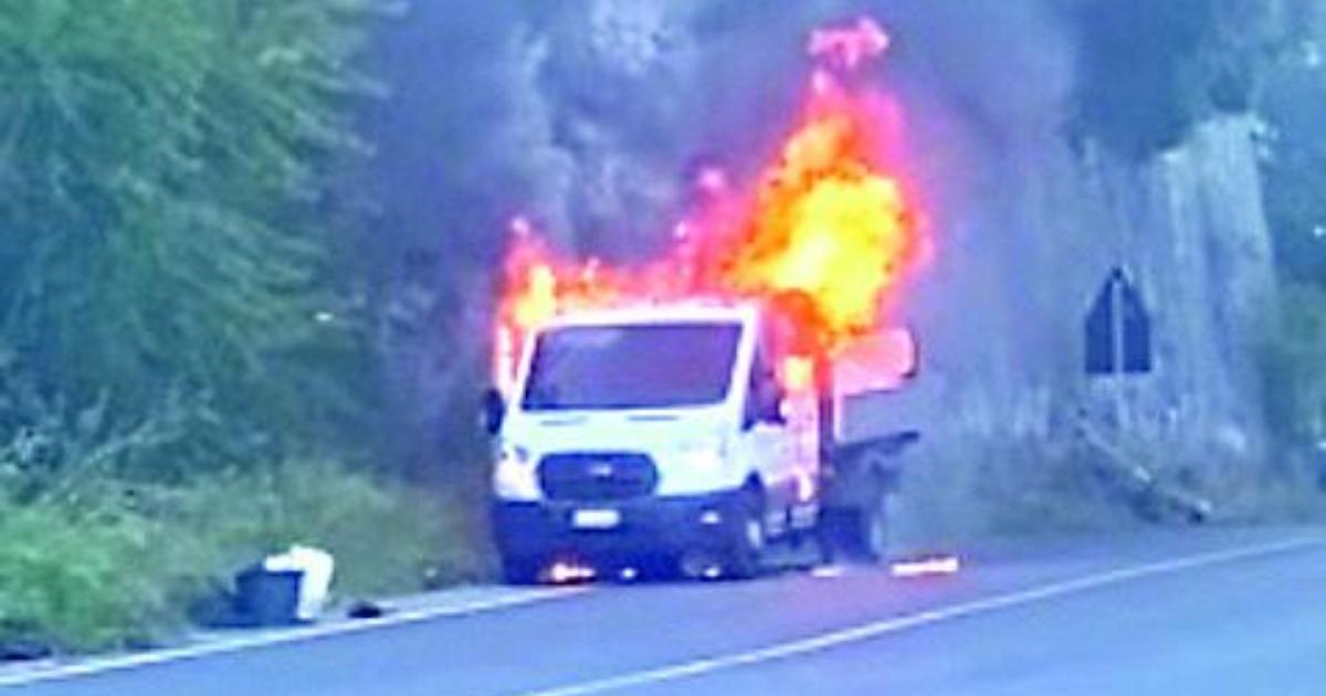 Paura questa mattina sulla Cassia Sud all'altezza del Ponte dell'Elce. Per causa che sono ancora in corso d'accertamento, un furgone con a bordo due operai ha preso fuoco.