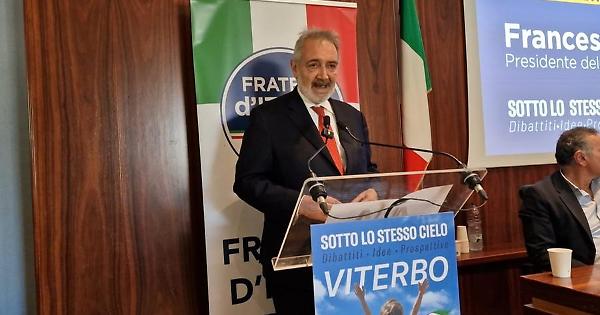 Riferendosi poi allo «scempio della Tuscia sotto il profilo paesaggistico e ambientale compiuto dalla giunta Leodori-Zingaretti», anticipare una norma inserita nella legge di stabilità «per bloccare nuovamente l'invasione di pale eoliche e pannelli fotovoltaici». E sempre in tema di difesa di ambiente e territorio: «Con il deputato Mauro Rotelli e la vicepresidente dell'Europarlamento Antonella Sberna abbiamo incontrato il ministro Pichetto Fratin e detto chiaramente che di realizzare il deposito di scorie nucleari nella Tuscia non se ne parla. Viterbo è già dato».