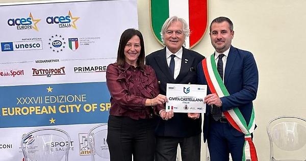CIVITA CASTELLANA protagonista il 10 novembre alla trentasettesima edizione del Gala European City of Sport, organizzato a Roma nel salone d’onore del Coni da ACES Europe e MSP Italia. Civita Castellana, infatti, lunedì ha ufficialmente ricevuto la benemerenza di Comune Europeo dello Sport 2027 conferita da ACES Europe, l’associazione che ogni anno seleziona e premia le città europee maggiormente impegnate nella promozione dello sport, del benessere e dell’inclusione sociale attraverso l’attività sportiva.