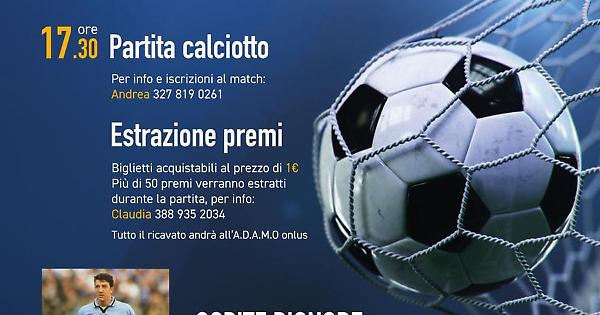 Via alle 16, quando ci saranno delle esibizioni dei bambini della categoria Primi Calci di Allumiere ed Evergreen. Alle 17.30 il programma prevede una partita di calciotto tra gli amici di Tomaso. Chi vuole, può partecipare telefonando ad Andrea al 3278190261. È prevista anche l’estrazione di premi, tramite i biglietti che sono acquistabili al modico costo di un euro. Più di 50 premi verranno estratti nel corso della partita di calciotto. Per informazioni si può contattare Claudia al 3889352034. L’intero incasso della manifestazione verrà devoluto all’Adamo Onlus.
